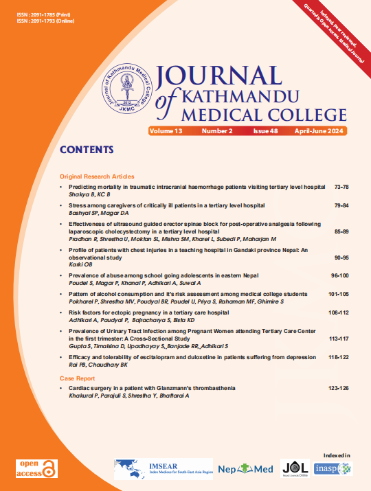 Khanal P, Ghimire RH, Gautam B, Dhungana SK, Parajuli P, Jaiswal AK, Khanal B. Substance use among medical students in Kathmandu valley. JNMA J Nepal Med Assoc. 2010 Oct-Dec;50(180):267-72 [PubMed| Full Text|DOI]